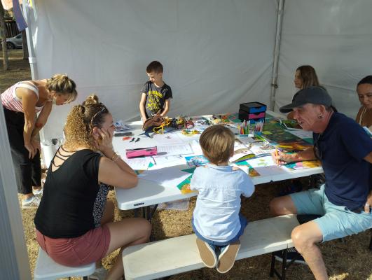 Le public a découvert dès le matin une bibliothèque éphémère installée en plein air, invitant à feuilleter librement albums, romans, BD et revues sous les arbres. Les enfants ont participé à des lectures et contes, confortablement installés à l’ombre, captivés par les histoires partagées par les bibliothécaires.