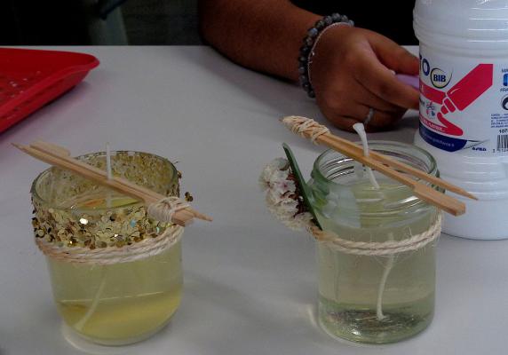 A l’approche des fêtes, c’était le moment de penser à un cadeau original à offrir à ses amis ou ses proches. Le 15 décembre, l’espace Komela a mis a contribution les petites mains de nos adhérents pour réaliser un cadeau fantaisie, fait de récupération et d’amour : des bougies parfumées à l’huile essentielle.
