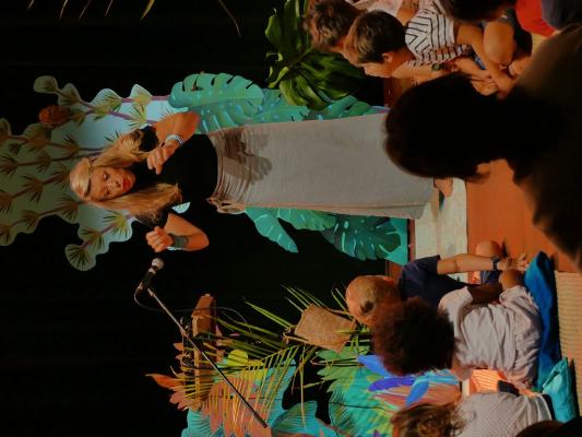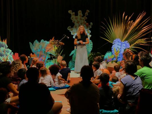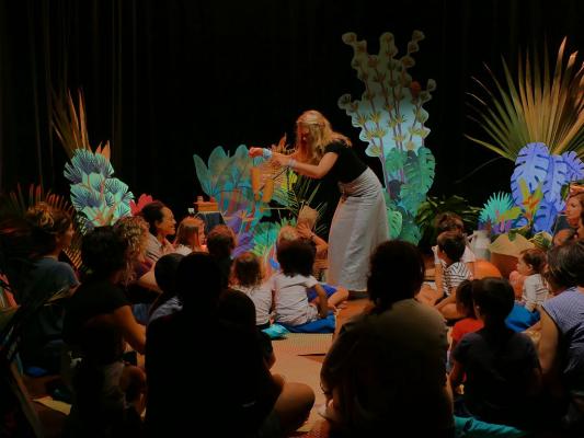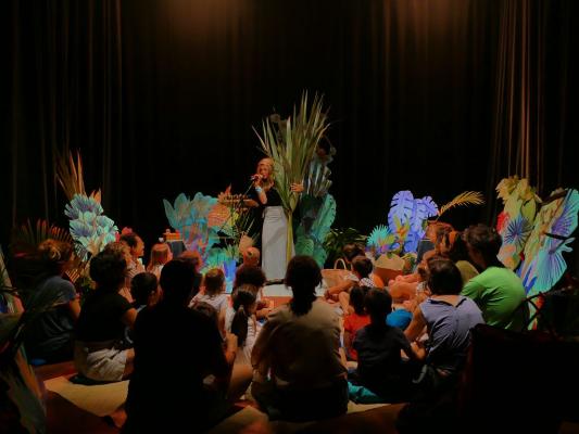 Ce mercredi 4 septembre, l'auditorium Sidha-Chetty a été le théâtre d'un moment de pure magie, porté par la comédienne et chanteuse Cécile Leroy. Membre de la Cie de l’Onde, elle a présenté son spectacle PETITS FRISSONS, une version intimiste de son spectacle SOUS NOS FRISSONS. Deux représentations ont eu lieu, l'une à 11h et l'autre à 14h, offrant aux jeunes spectateurs une expérience unique au cœur d'un univers enchanteur.