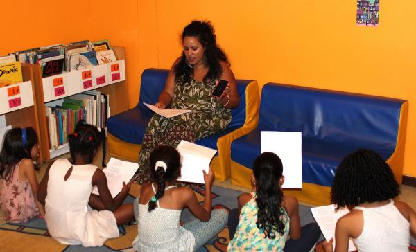 Ce samedi matin, Cécile Leroy était à la bibliothèque Sudel Fuma. C’est dans un décor luxuriant et coloré qu’une quarantaine de personnes, parents et enfants, ont assisté à deux représentations de « Petits frissons ».
