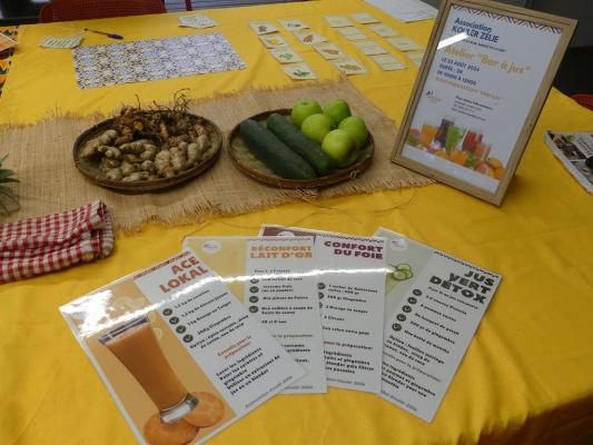L’association Koulèr zélie, dont la mission est d’améliorer la santé mentale et physique de chacun, porte fièrement le slogan "manzé po lo kor, manzé po lo ker" (manger pour le corps, manger pour le cœur). Cet engagement s’est reflété tout au long de l'atelier, où chaque recette de jus a été pensée pour allier saveur et bien-être.