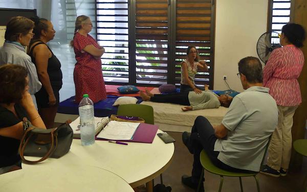 La praticienne nous a expliqué cette méthode qui associe psychologie, biologie et acu-pression pour libérer les blocages émotionnels et favoriser le bien-être. Les participants ont pu découvrir les bases de cette technique et apprendre à stimuler certains points d'accu-pression pour améliorer leur équilibre émotionnel.