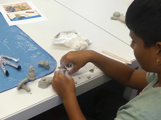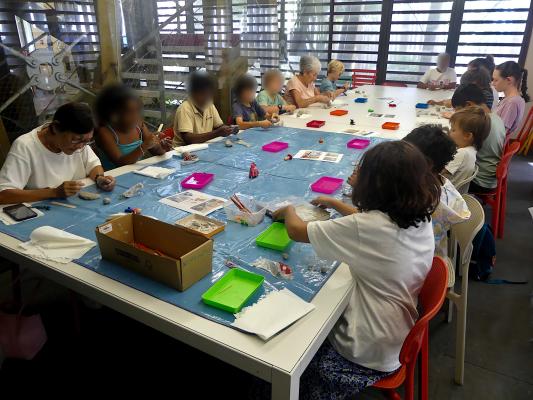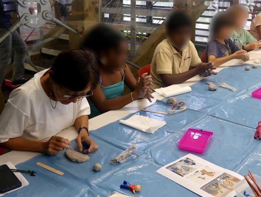 Au cœur de l’atelier : le gouzou, petit personnage bien connu et emblématique de La Réunion crée par l'artiste Jace, qui a inspiré bon nombre de créations. Chacun a pu façonner sa propre version de cette silhouette facétieuse, tantôt espiègle, tantôt rêveuse, mais toujours unique.